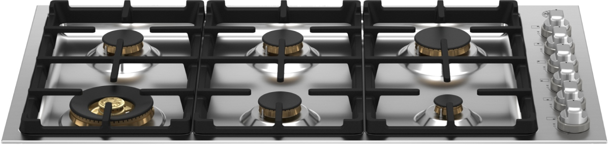 The combination of 6 brass burners and cast iron contour grates let you cook like a professional. The grates are designed for maximum space to fit pots and pans of different sizes with ease. Boil pasta, sear meat or stir fry with a wok on the power burner with dual ring flame; or delicately melt chocolate or warm cream on the simmer burner.