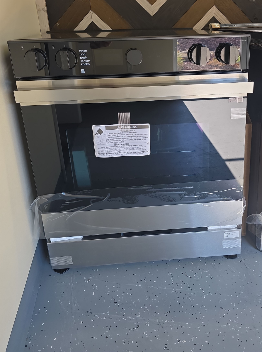 Samsung's smart electric range features a stylish and contemporary Bespoke design with a recessed handle that seamlessly blends into your kitchen for an elegant and minimalist look. Air Sous Vide locks in flavor and moisture so you can enjoy gourmet cooking at home and Air Fry built into the oven lets you cook healthier fried food.Read More