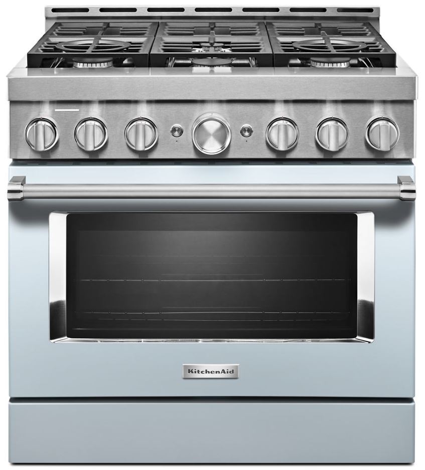 Expand your skills with a 36-inch KitchenAid® Commercial Style Range with 6 burners. This gas range features two versatile 20,000 BTU Ultra Power™ Dual-Flame Burners with the power and precision needed to successfully sear, simmer, stir-fry and saute´. Even-Heat™ True Convection helps you achieve more consistent baking and roasting.Read More