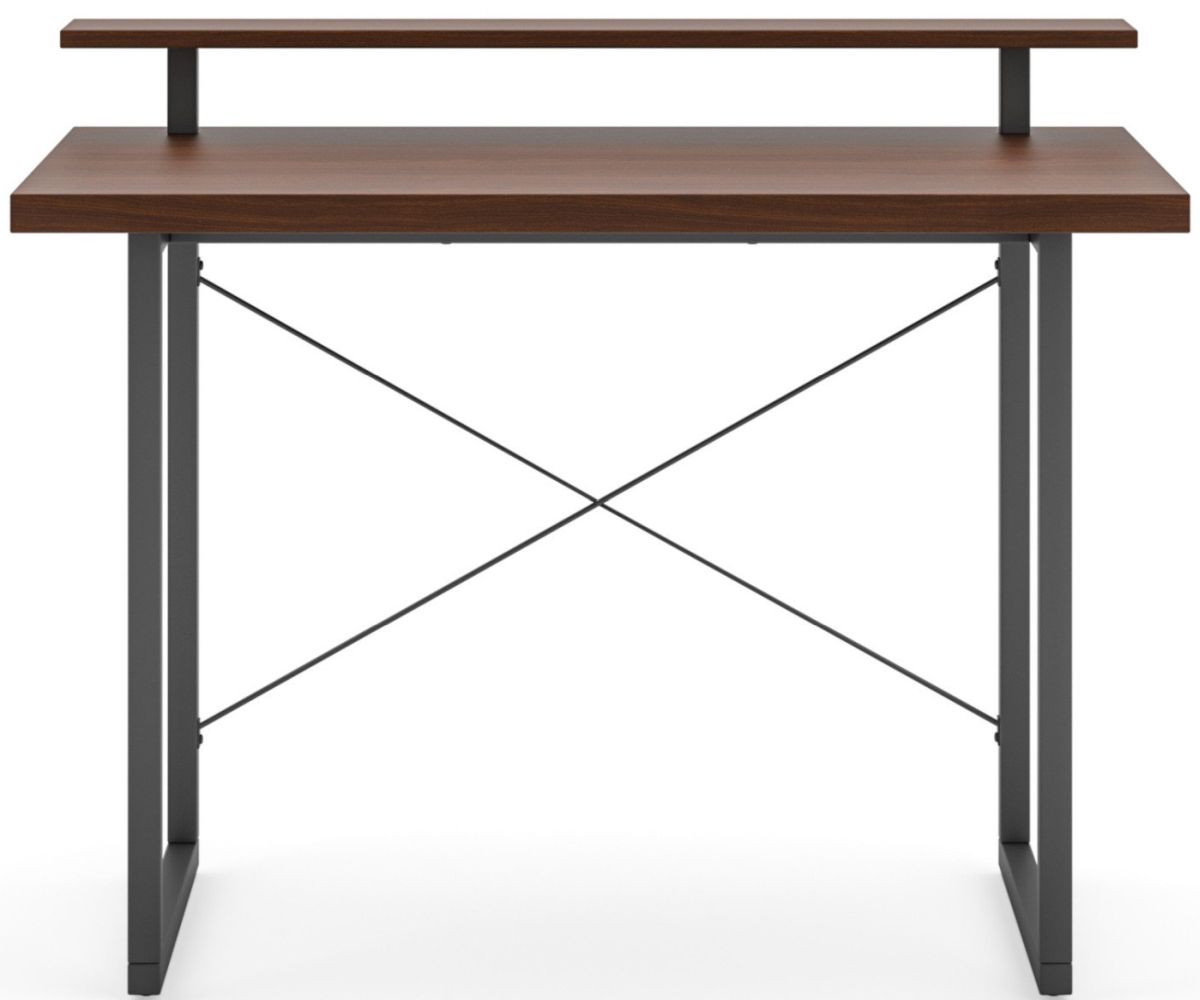 From collaborative areas to home offices, there isn't a workspace that wouldn't benefit from this Homestyles Merge Table Desk with Monitor Stand. The light scale frame gives it a minimalist appeal, which is complemented nicely by the walnut veneer top with a second platform to hold a flat screen monitor. The lacquer top coat protects the finish and creates totally worry-free ownership.Read More