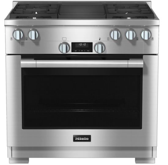 36 inch range All Gas with DirectSelect, Twin convection fans and M Pro dual stacked burners. Turn dial operation with display - DirectSelect. Maximum variety - four powerful burners and a grill. Fast heating time and even heat distribution – TwinPower. Easy clean-up - Self-cleaning and dishwasher-safe grates. Easy opening & closing - noise and vibration absorbers.Read More