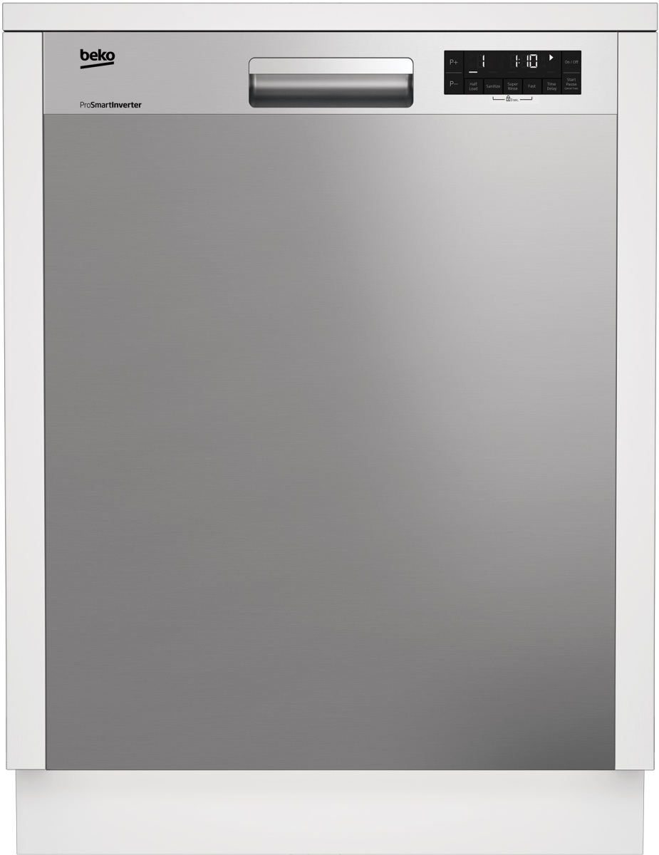 Beko 24" Fingerprint Free Stainless Steel Front Control Built In Dishwasher featuring 3 racks including a height adjustable upper rack. 5 wash programs include Heavy+, Quick & Shine, Express and Rinse & Hold.Read More