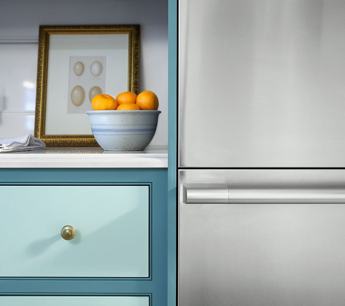 Versatile design allows for ¾” proud installation in existing 24” deep cabinets or true flush installation in 25” deep cabinetry. All drawers line up with standard countertop height a seamless look.