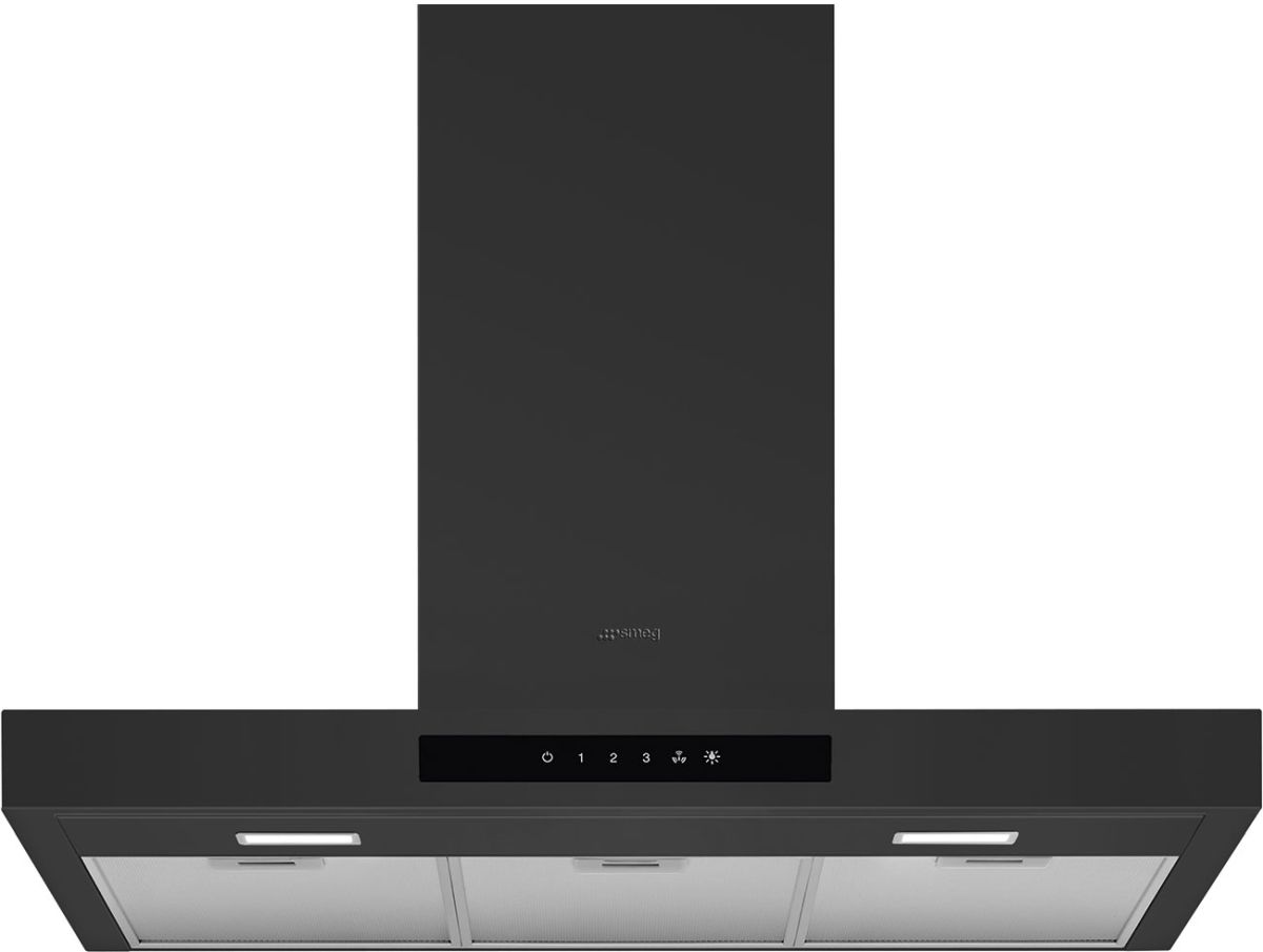 The Smeg 30" Matte Black Island Range Hood has Intuitive and immediate usability thanks to the elegant white LED backlit touch display and all cooker hoods feature lights to illuminate the cooking area or add to the ambience of the kitchen. Model has filters to help remove grease from the steam emanating from the pans during cooking.Read More