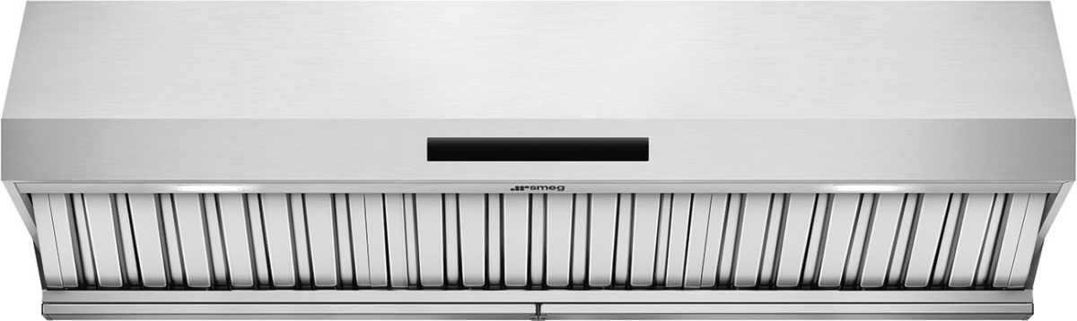Smeg 48" Stainless Steel Under Cabinet Range Hood with maximum cleanliness, protection, inclined anti-condensation baffle filters in stainless stee, and integrated fixed collector.Read More