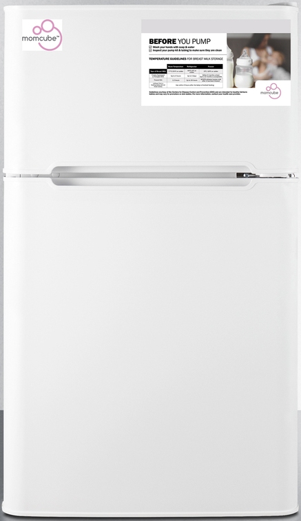 The CP34WMC is a counter height, two-door MOMCUBE™ refrigerator-freezer sized at 19" wide, ideal for homes in need of extra storage space for nursing mothers. It features a classic white finish and reversible doors for added convenience. This unit is designed for freestanding use.Read More