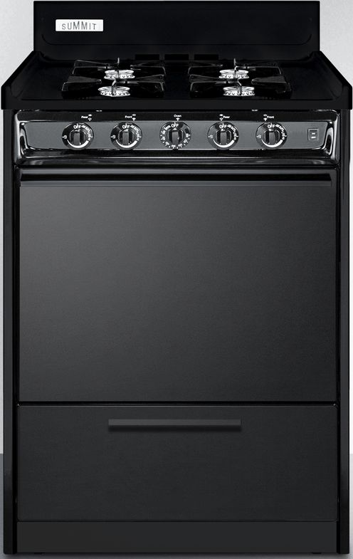 The TNM6107C comes in a jet black finish to suit any kitchen setting. This unit has a recessed oven door and is conveniently sized at just 24" deep for a better fit in galley in L-shaped kitchens, where every inch counts. Constructed from porcelain and steel, the TNM6107C offers lasting durability. We include an anti-tip bracket for added safety. With its classic style and quality construction, Summit's made in the USA cooking line offers reliable cooking for smaller homes. Additional choices are available in 20", 30", and 36" wide fits. This unit ships ready for natural gas connections. To use with propane, add the Kit LP.