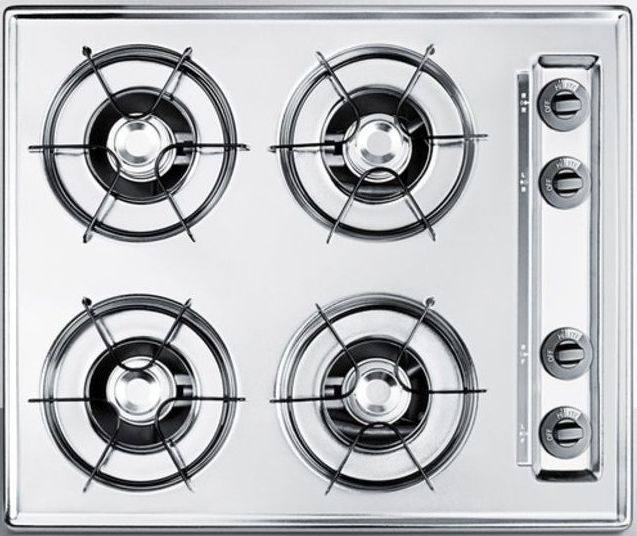 The ZNL033 is a 24" wide cooktop with an attractive finish in brushed chrome. Four 9000 BTU open burners run on electronic ignition and natural gas and include durable porcelain enameled steel grates.Read More