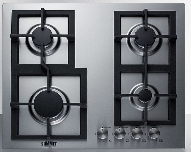 Summit’s 'Made in Italy' gas cooktops offer a powerful performance in a durable, safe, and stylish design. The GCJ4SS is a four-burner gas cooktop with a 304 grade stainless steel surface for added durability. In a space-saving size of 24 inches, it is perfect for smaller kitchens, apartments, and similar space-challenged environments. Two continuous cast iron grates in an off-center design afford extra space when cooking with multiple pots and pans that can otherwise collide on tighter surfaces.Read More