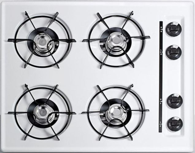 The WNL033 is a 24" wide cooktop with a scratch resistant porcelain surface in white. Four 9000 BTU open burners run on electronic ignition and natural gas and include durable porcelain enameled steel grates. A recessed top helps to contain spills. To convert this unit for LP gas, order the Kit LP.Read More