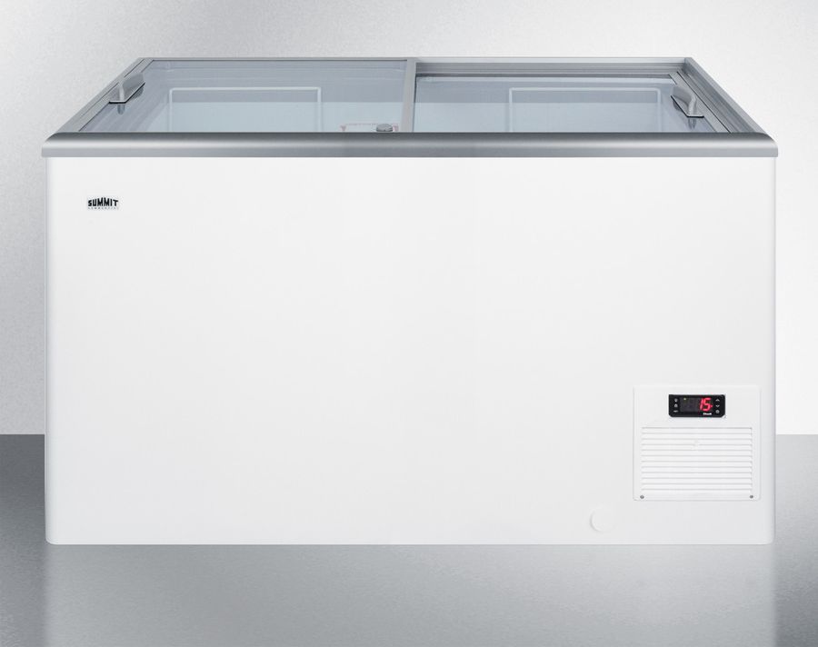 Summit Commercial's line of flat top ice cream freezers features a deluxe European design to provide quality storage and long-lasting convenience. Made for us by Elcold in Denmark, the NOVA35 features two smoothly sliding tempered glass lids with a flat top design. This unit includes a removable keyed lock to allow users the option of securing their goods.Read More