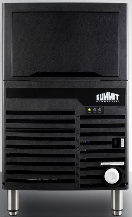 Summit Commercial brings powerful performance and user-friendly convenience in an under the counter design with the BIM100 commercially approved icemaker. Made for Summit in South Korea, the BIM100 is ETL-S listed to NSF-12 standards for use in commercial applications. This unit features a fully finished stainless steel cabinet and jet black front with a slide-up lid. It can be built-in under counters or used freestanding, with a front-breathing air-cooled system to prevent overheating. The BIM100 produces up to 100 lbs. of clear dice style ice cubes per day. The interior can store up to 27 lbs. to help meet the needs of high traffic commercial environments, with an automatic sensor to prevent overproduction.Read More