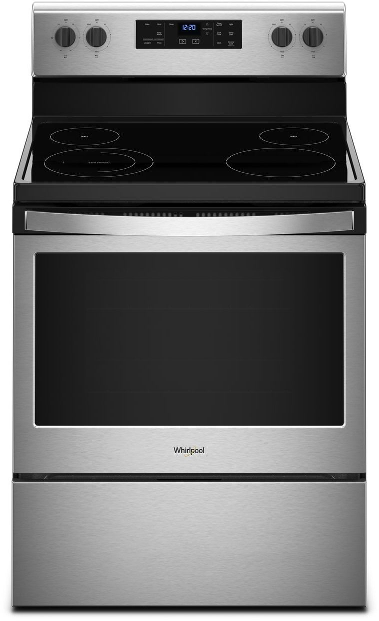 Whirlpool® 29.88" Free Standing Electric Range-Stainless Steel with 5.3 cu. ft. total capacity, adjustable self cleaning and control lock modeRead More