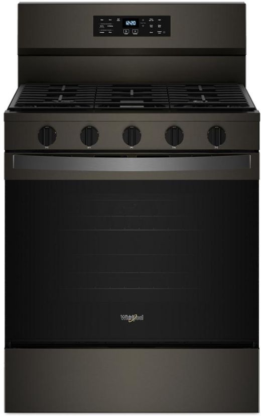 Whirlpool® 30" Black-on-Stainless Freestanding Gas Range features No Preheat Air Fry, Griddle Zone, SpeedHeat™ Burner, Edge-to-Edge Grates, Cooktop Flexibility, Keep Warm Setting, Self Clean, and Air Cooking Technology.Read More
