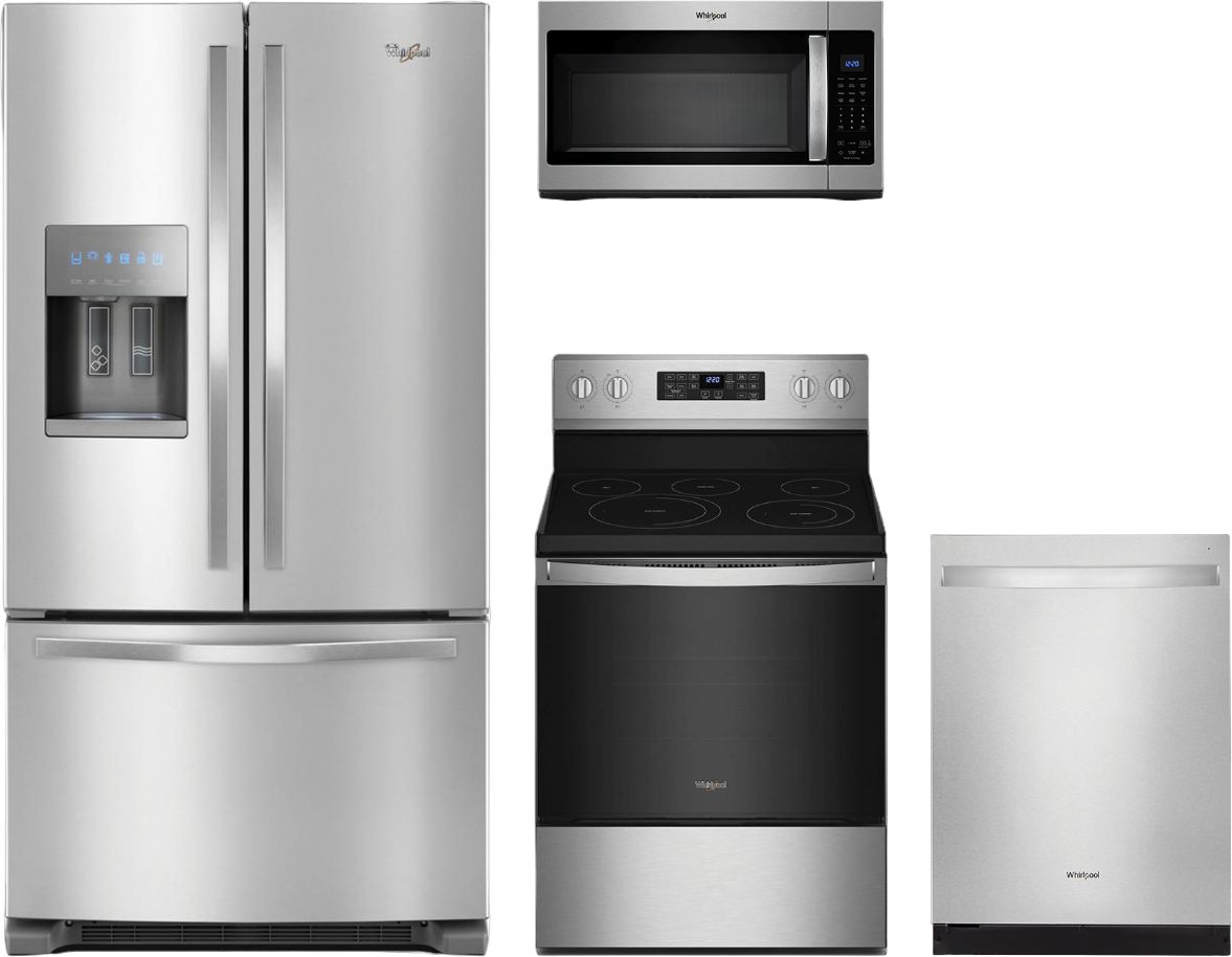 Organize foods for your family in this Whirlpool® French door refrigerator available in fingerprint-resistant stainless steel. A humidity-controlled double crisper and two-tier freezer storage provide plenty of room. Spillproof shelves help contain spills and for filtered water right at hand, this refrigerator features an exterior water dispenser with EveryDrop® ice and water filtration.