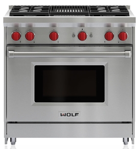 Wolf® 36" Stainless Steel Pro Style Gas Range with infrared charbroiler and halogen lightRead More