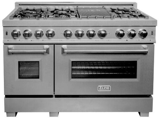 ZLINE's Professional 48" Range is complete with a 7 burner gas cooktop for energy efficiency, temperature control, and even-cooking. The 4.6 cu. ft. of deep oven capacity provides a large cooking area that’s perfect for multiple dishes at once and easily handles large baking sheets, like an 18" pizza.Read More