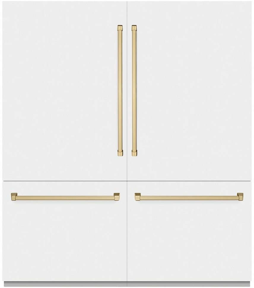 Luxury isn’t meant to be desired, it’s meant to be attainable. The ZLINE Autograph Edition 72 in. 39.6 cu. ft. French Door Built-In Bottom Freezer Refrigerator with Water Dispensers and Ice Makers in White Matte with Graphite Gray Interior and Champagne Bronze Accents (GRBITZ-WM-72-CB) provides the ultimate upgrade to the center of your home by pairing premium dual cooling technology with enhanced storage capacity for multiple grocery items. Achieve ZLINE Attainable Luxury® excellence with innovative features designed to enhance your kitchen’s cooling and freezing capability.Read More