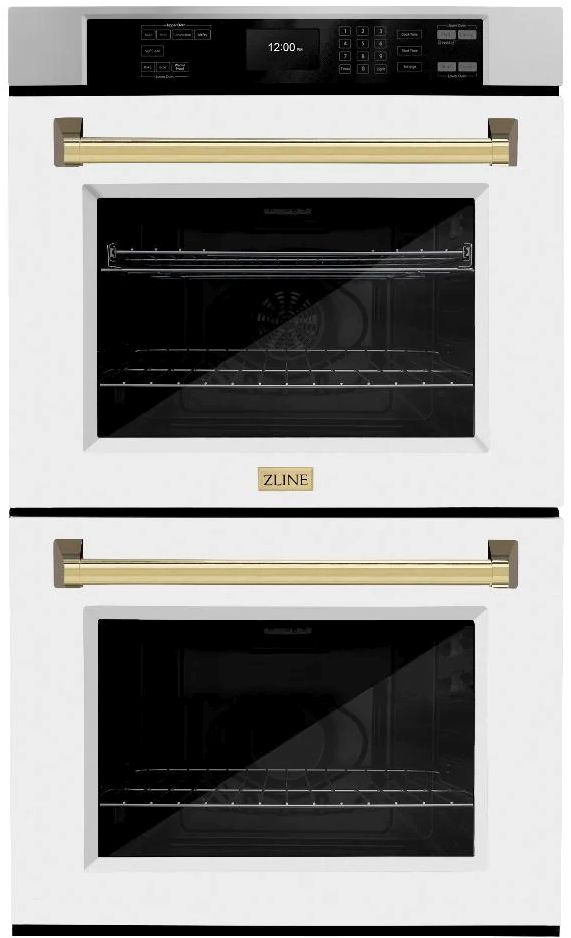 The ZLINE 30 in. Autograph Edition Professional True Convection Double Wall Oven with Air Fry and Self Clean in Stainless Steel with White Matte Doors and Polished Gold Handles (WADZ-WM-30-G) provides a professional culinary experience by pairing reliable, everyday performance with contemporary convection cooking capabilities and cutting-edge air frying technology.